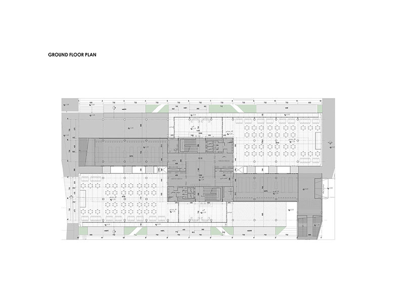 There is an exterior loop as the palier restaurant which links the different components of the building. In fact, this loop and the retails in the ground floor unify the building and the urban context.